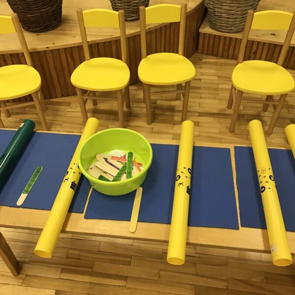 3. vecums 4-5 gadi - katrs bērns izvēlas sev krāsas kociņu un vingrinās šo krāsu spēlēt. 5-7 gadi - izvēlas burtus un mācās kombinēt tā un ti ti ritmus.